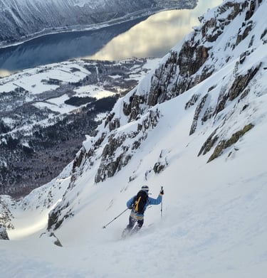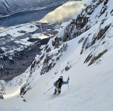 Experience the breathtaking beauty of Norway's untouched backcountry, expertly guided for an unforgettable skiing adventure in harmony with nature.